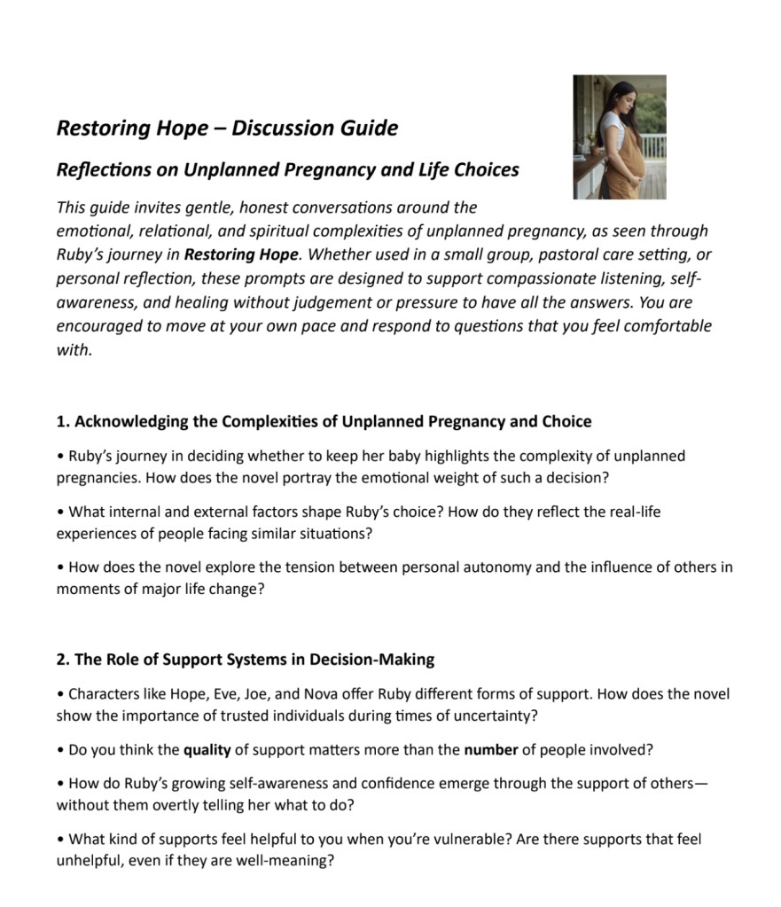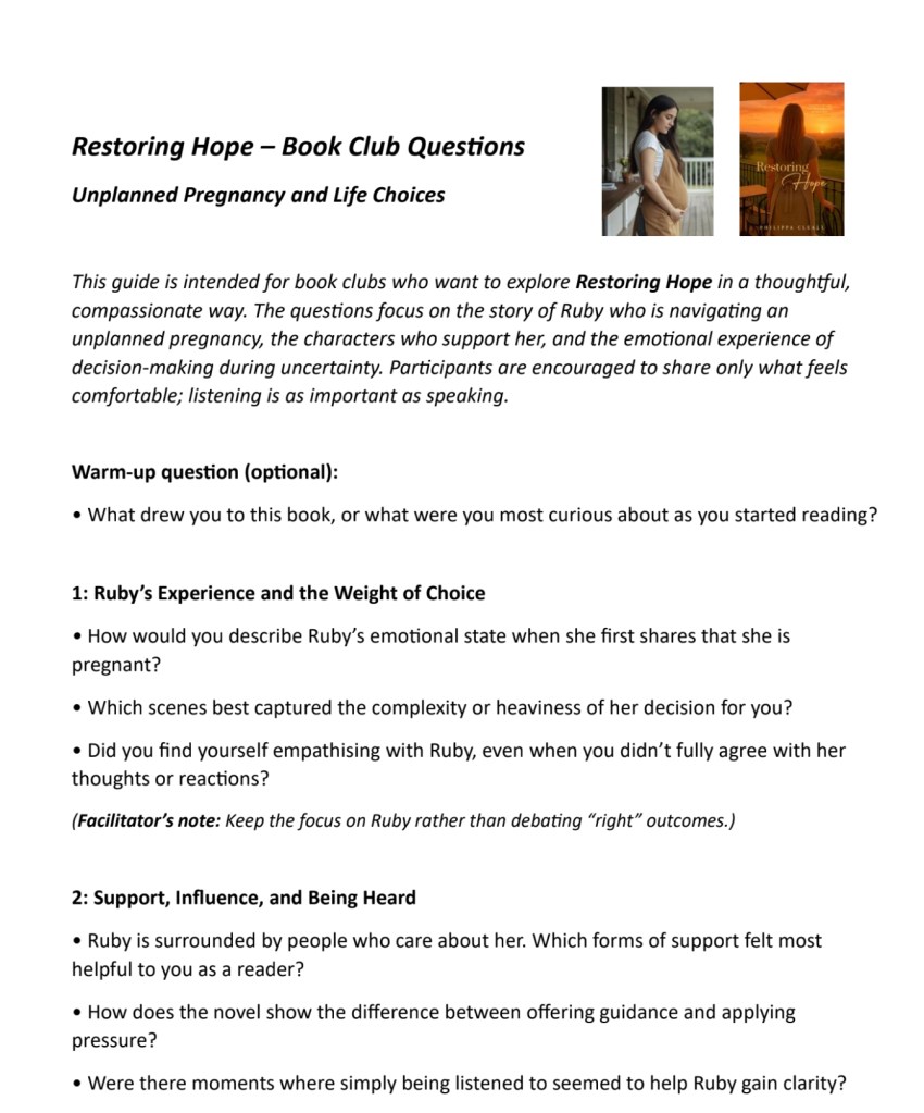 I have just finished reading your book Restoring Hope and thoroughly enjoyed the gentle yet powerful storyline. I particularly loved the way the church leaders dealt with ‘Mark’ and stood up for Hope. O how I long to see the church operate like this! I have bought several copies as resources. Well done!! A. Bennett – Court Chaplain
